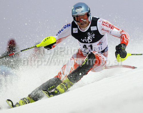 : Kalle Palander of Finland skiing in first run of Men slalom race of Audi FIS alpine skiing World Cup in Zagreb, Croatia. Slalom race of Men Audi FIS Alpine skiing World Cup 2010-11, was held on Thursday, 6th of January 2011, in Sljeme above Zagreb, Croatia.