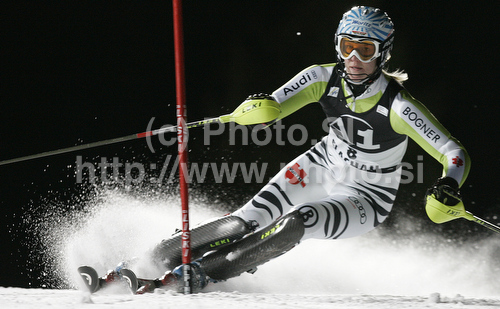 : Susanne Riesch of Germany skiing in first run of Women night slalom race of Audi FIS alpine skiing World Cup in Flachau, Austria. Slalom race of Women Audi FIS Alpine skiing World Cup 2010-11, was held on Tuesday, 11th of January 2011, in Flachau, Austria.