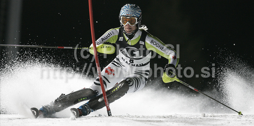 : Susanne Riesch of Germany skiing in first run of Women night slalom race of Audi FIS alpine skiing World Cup in Flachau, Austria. Slalom race of Women Audi FIS Alpine skiing World Cup 2010-11, was held on Tuesday, 11th of January 2011, in Flachau, Austria.