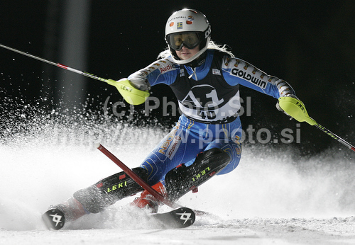 : Emelie Wikstroem of Sweden skiing in first run of Women night slalom race of Audi FIS alpine skiing World Cup in Flachau, Austria. Slalom race of Women Audi FIS Alpine skiing World Cup 2010-11, was held on Tuesday, 11th of January 2011, in Flachau, Austria.