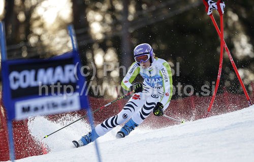 : Maria Riesch of Germany skiing in first run of Women giant slalom race of Audi FIS alpine skiing World Cup in Maribor, Slovenia. Giant slalom race of Women Audi FIS Alpine skiing World Cup 2010-11, was held on Saturday, 15th of January 2011, in Maribor, Slovenia.