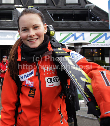 : Sanni Leinonen of Finland after Women slalom race of Audi FIS alpine skiing World Cup in Maribor, Slovenia got canceled. Slalom race of Women Audi FIS Alpine skiing World Cup 2010-11, was planned to be held on Sunday, 16th of January 2011, in Maribor, Slovenia.