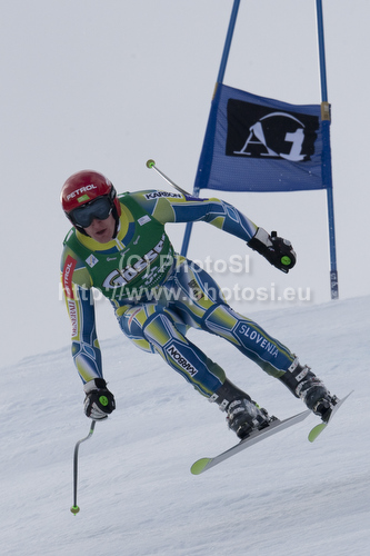 : Andrej Sporn (SLO) takes to the air competing in the 2011 Hahnenkamm Super Giant Slalom race (Super G)part of Audi FIS World Cup races in Kitzbuhel Austria.