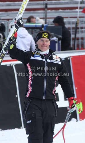: Ivica Kostelic (CRO) during the flower ceremony for the 2011 Hahnenkamm Super Giant Slalom race (Super G)part of Audi FIS World Cup races in Kitzbuhel Austria. The race was won by Ivica Kostelic (CRO).