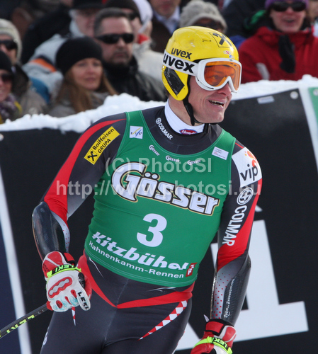 : Ivica Kostelic (CRO) reacts in the finish area after competing in the 2011 Hahnenkamm Super Giant Slalom race (Super G)part of Audi FIS World Cup races in Kitzbuhel Austria.