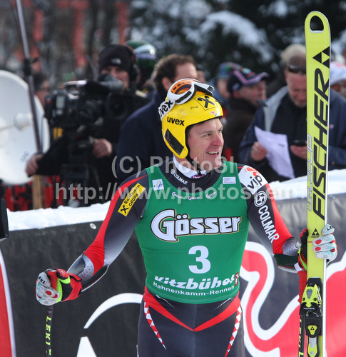 Kitzbuhel ,Austria - 22.01.2011 : Ivica Kostelic (CRO) reacts in the finish area after competing in the 2011 Hahnenkamm Super Giant Slalom race (Super G)part of Audi FIS World Cup races in Kitzbuhel Austria. Photo by: Mitchell Gunn / PhotoSI