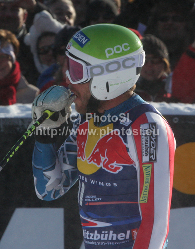 : Bode Miller (USA) reacts in the finish area of the 71st Hahnenkamm downhill race part of Audi FIS World Cup races in Kitzbuhel Austria.