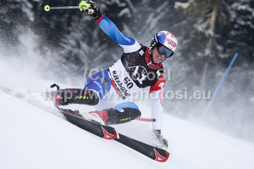 : Justin Murisier (SUI) attacks a control gate while competing in the slalom race part of Audi FIS World Cup races in Kitzbuhel Austria.