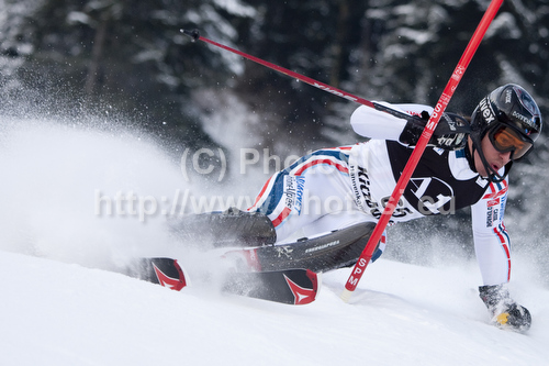 : Victor Muffat-Jeandet (FRA) attacks a control gate while competing in the slalom race part of Audi FIS World Cup races in Kitzbuhel Austria.