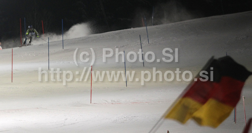: Felix Neureuther of Germany skiing in first run of Men slalom race of Audi FIS alpine skiing World Cup in Schladming, Austria. Traditional Night slalom race of Men Audi FIS Alpine skiing World Cup 2010-11, was held on Tuesday, 25th of January 2011, in Schladming, Austria.