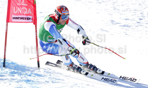 : Didier Cuche of Switzerland skiing in Men Super-G race of Audi FIS alpine skiing World Cup in Hinterstoder, Austria. Super-G race of Men Audi FIS Alpine skiing World Cup 2010-11, was held on Saturday, 5th of February 2011, in Hinterstoder, Austria.