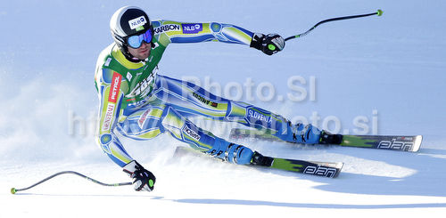 : Gasper Markic of Slovenia skiing in Men Super-G race of Audi FIS alpine skiing World Cup in Hinterstoder, Austria. Super-G race of Men Audi FIS Alpine skiing World Cup 2010-11, was held on Saturday, 5th of February 2011, in Hinterstoder, Austria.