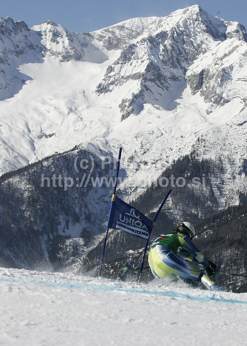 : Gasper Markic of Slovenia skiing in Men Super-G race of Audi FIS alpine skiing World Cup in Hinterstoder, Austria. Super-G race of Men Audi FIS Alpine skiing World Cup 2010-11, was held on Saturday, 5th of February 2011, in Hinterstoder, Austria.
