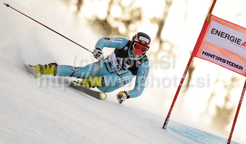 : Iver Bjerkestrand of Norway skiing during first run of Men Giant slalom race of Audi FIS alpine skiing World Cup in Hinterstoder, Austria. Giant slalom race of Men Audi FIS Alpine skiing World Cup 2010-11, was held on Sunday, 6th of February 2011, in Hinterstoder, Austria.