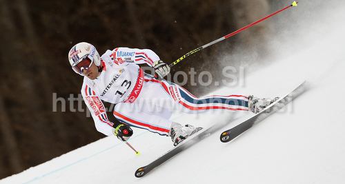 : Tenth placed Adrien Theaux of France skiing in Men Super-G race of FIS alpine skiing World Championships in Garmisch-Partenkirchen, Germany. Super-G race of Men Super-G race of FIS alpine skiing World Championships, was held on Wednesday, 9th of February 2011, in Garmisch-Partenkirchen, Germany.