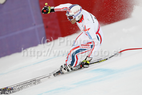 : Tenth placed Adrien Theaux of France skiing in Men Super-G race of FIS alpine skiing World Championships in Garmisch-Partenkirchen, Germany. Super-G race of Men Super-G race of FIS alpine skiing World Championships, was held on Wednesday, 9th of February 2011, in Garmisch-Partenkirchen, Germany.