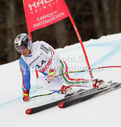 : Ninth placed Peter Fill of Italy skiing in Men Super-G race of FIS alpine skiing World Championships in Garmisch-Partenkirchen, Germany. Super-G race of Men Super-G race of FIS alpine skiing World Championships, was held on Wednesday, 9th of February 2011, in Garmisch-Partenkirchen, Germany.