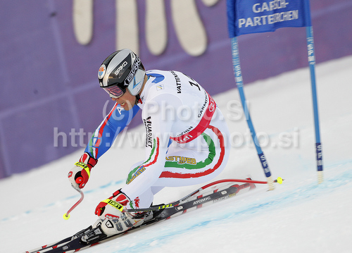 : Ninth placed Peter Fill of Italy skiing in Men Super-G race of FIS alpine skiing World Championships in Garmisch-Partenkirchen, Germany. Super-G race of Men Super-G race of FIS alpine skiing World Championships, was held on Wednesday, 9th of February 2011, in Garmisch-Partenkirchen, Germany.
