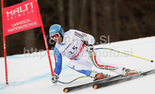 : Winner Christof Innerhofer of Italy skiing in Men Super-G race of FIS alpine skiing World Championships in Garmisch-Partenkirchen, Germany. Super-G race of Men Super-G race of FIS alpine skiing World Championships, was held on Wednesday, 9th of February 2011, in Garmisch-Partenkirchen, Germany.