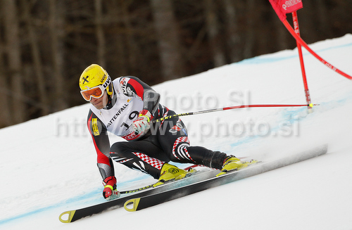 : Third placed Ivica Kostelic of Croatia skiing in Men Super-G race of FIS alpine skiing World Championships in Garmisch-Partenkirchen, Germany. Super-G race of Men Super-G race of FIS alpine skiing World Championships, was held on Wednesday, 9th of February 2011, in Garmisch-Partenkirchen, Germany.