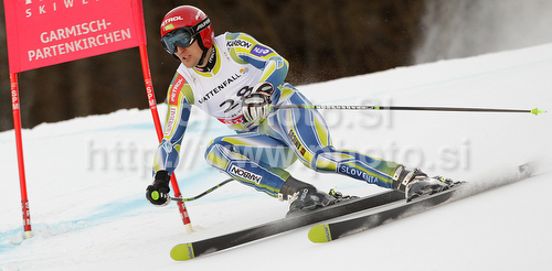 : Andrej Sporn of Slovenia skiing in Men Super-G race of FIS alpine skiing World Championships in Garmisch-Partenkirchen, Germany. Super-G race of Men Super-G race of FIS alpine skiing World Championships, was held on Wednesday, 9th of February 2011, in Garmisch-Partenkirchen, Germany.