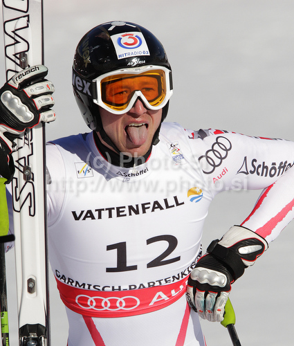 Garmisch-Partenkirchen ,Germany - 09.02.2011 : Second placed Hannes Reichelt of Austria reacts in finish of Men Super-G race of FIS alpine skiing World Championships in Garmisch-Partenkirchen, Germany. Super-G race of Men Super-G race of FIS alpine skiing World Championships, was held on Wednesday, 9th of February 2011, in Garmisch-Partenkirchen, Germany. Photo by: Mitja Smid Bricelj
