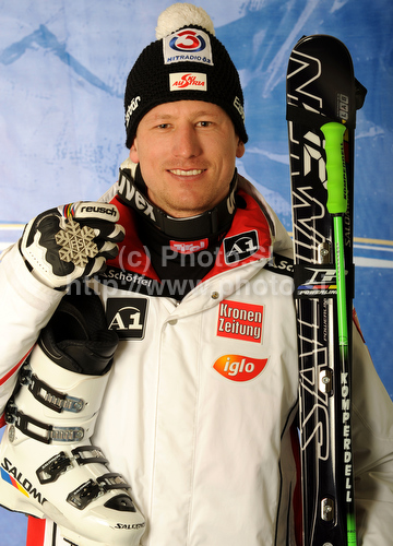 : Second placed Hannes Reichelt of Austria celebrates his medal won in Men Super G race of FIS Alpine World Ski Championships in Garmisch Partenkirchen, Germany. Men Super G race of FIS Alpine World Ski Championships was held on Wednesday, 9th of February 2011 in Garmisch-Partenkirchen, Germany.