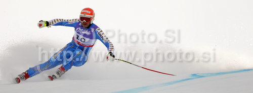 : Patrik Jaerbyn of Sweden skiing in training run for Men downhill race of FIS alpine skiing World Championships in Garmisch-Partenkirchen, Germany. Training run for men downhill race of Men Super-G race of FIS alpine skiing World Championships, was held on Thursday, 10th of February 2011, in Garmisch-Partenkirchen, Germany.
