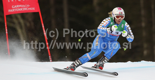 : Anja Paerson of Sweden skiing in training run for Women downhill race of FIS alpine skiing World Championships in Garmisch-Partenkirchen, Germany. Training run for women downhill race of Men Super-G race of FIS alpine skiing World Championships, was held on Thursday, 10th of February 2011, in Garmisch-Partenkirchen, Germany.