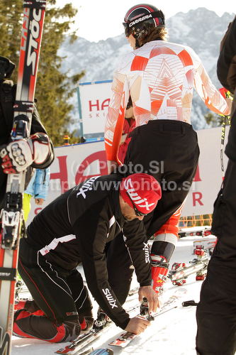 : Andreas Romar of Finland before the start of training of Mens Downhill race of FIS alpine skiing World Championships in Garmisch-Partenkirchen, Germany. Training of Mens Downhill race of FIS alpine skiing World Championships, was held on Thursday, 10th of February 2011, in Garmisch-Partenkirchen, Germany.