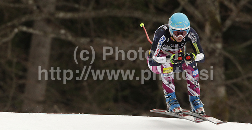 : Julia Mancuso of USA skiing in downhill part of Women super combined race of FIS alpine skiing World Championships in Garmisch-Partenkirchen, Germany. Super combined race of Women FIS alpine skiing World Championships, was held on Friday, 11th of February 2011, in Garmisch-Partenkirchen, Germany.