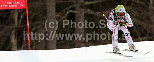 : Anna Fenninger of Austria skiing in downhill part of Women super combined race of FIS alpine skiing World Championships in Garmisch-Partenkirchen, Germany. Super combined race of Women FIS alpine skiing World Championships, was held on Friday, 11th of February 2011, in Garmisch-Partenkirchen, Germany.