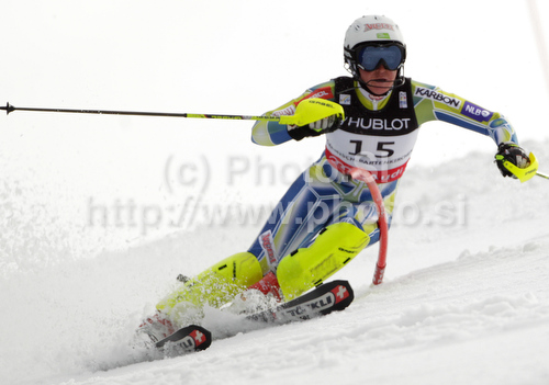 : Marusa Ferk of Slovenia skiing in slalom part of Women super combined race of FIS alpine skiing World Championships in Garmisch-Partenkirchen, Germany. Super combined race of Women FIS alpine skiing World Championships, was held on Friday, 11th of February 2011, in Garmisch-Partenkirchen, Germany.