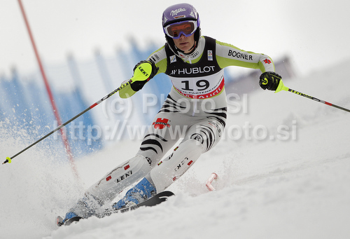 : Maria Riesch of Germany skiing in slalom part of Women super combined race of FIS alpine skiing World Championships in Garmisch-Partenkirchen, Germany. Super combined race of Women FIS alpine skiing World Championships, was held on Friday, 11th of February 2011, in Garmisch-Partenkirchen, Germany.