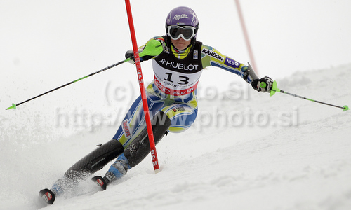 Garmisch-Partenkirchen ,Germany - 11.02.2011 : Second placed Tina Maze of Slovenia skiing in slalom part of Women super combined race of FIS alpine skiing World Championships in Garmisch-Partenkirchen, Germany. Super combined race of Women FIS alpine skiing World Championships, was held on Friday, 11th of February 2011, in Garmisch-Partenkirchen, Germany. Photo by: Primoz Jeroncic