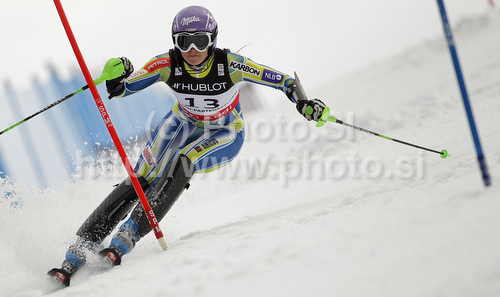 Garmisch-Partenkirchen ,Germany - 11.02.2011 : Second placed Tina Maze of Slovenia skiing in slalom part of Women super combined race of FIS alpine skiing World Championships in Garmisch-Partenkirchen, Germany. Super combined race of Women FIS alpine skiing World Championships, was held on Friday, 11th of February 2011, in Garmisch-Partenkirchen, Germany. Photo by: Primoz Jeroncic