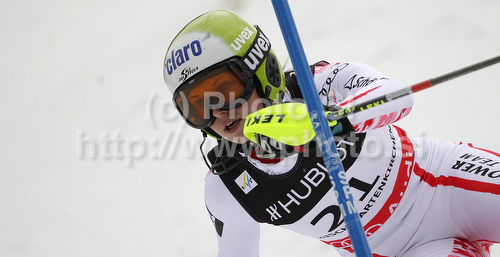: Winner Anna Fenninger of Austria skiing in slalom part of Women super combined race of FIS alpine skiing World Championships in Garmisch-Partenkirchen, Germany. Super combined race of Women FIS alpine skiing World Championships, was held on Friday, 11th of February 2011, in Garmisch-Partenkirchen, Germany.