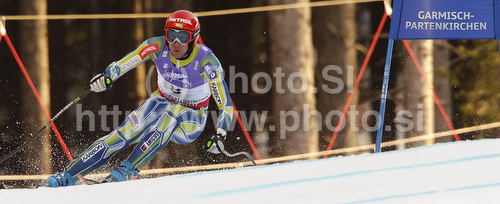 Garmisch-Partenkirchen ,Germany - 12.02.2011 : Andrej Jerman of Slovenia skiing in men downhill race of FIS alpine skiing World Championships in Garmisch-Partenkirchen, Germany. Men downhill race of FIS alpine skiing World Championships, was held on Saturday, 12th of February 2011, in Garmisch-Partenkirchen, Germany. Photo by: Primoz Jeroncic