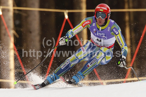 : Andrej Jerman of Slovenia skiing in men downhill race of FIS alpine skiing World Championships in Garmisch-Partenkirchen, Germany. Men downhill race of FIS alpine skiing World Championships, was held on Saturday, 12th of February 2011, in Garmisch-Partenkirchen, Germany.