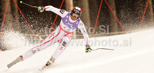 : Seventh placed Michael Walchhofer of Austria skiing in men downhill race of FIS alpine skiing World Championships in Garmisch-Partenkirchen, Germany. Men downhill race of FIS alpine skiing World Championships, was held on Saturday, 12th of February 2011, in Garmisch-Partenkirchen, Germany.