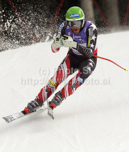 : Bode Miller of USA skiing in men downhill race of FIS alpine skiing World Championships in Garmisch-Partenkirchen, Germany. Men downhill race of FIS alpine skiing World Championships, was held on Saturday, 12th of February 2011, in Garmisch-Partenkirchen, Germany.