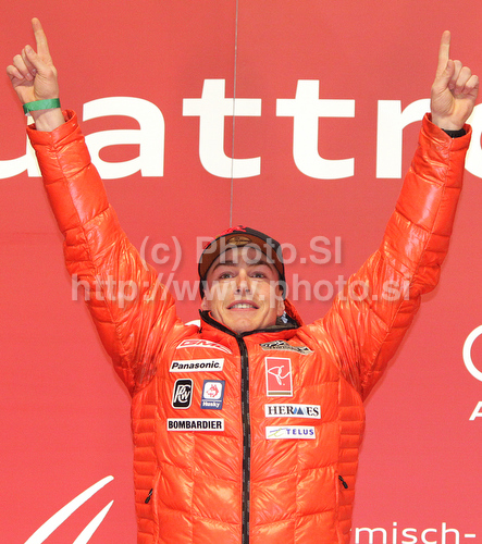Garmisch-Partenkirchen ,Germany - 12.02.2011 : Winner Erik Guay of Canada celebrates his medal won in Men downhill race of FIS alpine skiing World Championships in Garmisch-Partenkirchen, Germany. Men downhill race of FIS alpine skiing World Championships, was held on Saturday, 12th of February 2011, in Garmisch-Partenkirchen, Germany. Photo by: Mitja Smid Bricelj
