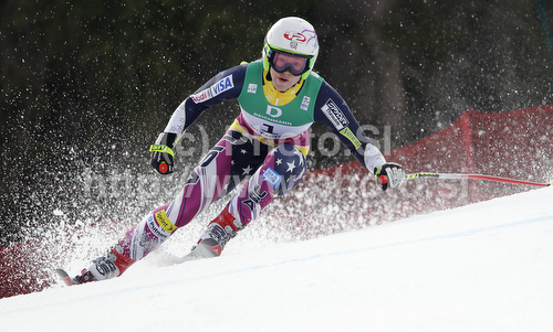 : Tenth placed Laurenne Ross of USA skiing in women downhill race of FIS alpine skiing World Championships in Garmisch-Partenkirchen, Germany. Women downhill race of FIS alpine skiing World Championships, was held on Sunday, 13th of February 2011, in Garmisch-Partenkirchen, Germany.