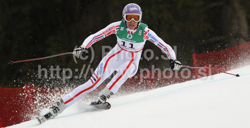 : Ingrid Jacquemod of France skiing in women downhill race of FIS alpine skiing World Championships in Garmisch-Partenkirchen, Germany. Women downhill race of FIS alpine skiing World Championships, was held on Sunday, 13th of February 2011, in Garmisch-Partenkirchen, Germany.