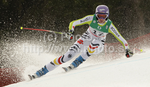: Third placed Maria Riesch of Germany skiing in women downhill race of FIS alpine skiing World Championships in Garmisch-Partenkirchen, Germany. Women downhill race of FIS alpine skiing World Championships, was held on Sunday, 13th of February 2011, in Garmisch-Partenkirchen, Germany.