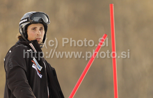 : Andreas Romar of Finland during course inspection before start of slalom of men super combined race of FIS alpine skiing World Championships in Garmisch-Partenkirchen, Germany. Men super combined race of FIS alpine skiing World Championships, was held on Monday, 14th of February 2011, in Garmisch-Partenkirchen, Germany.