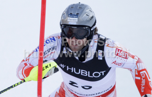 : Andreas Romar of Finland skiing in slalom of men super combined race of FIS alpine skiing World Championships in Garmisch-Partenkirchen, Germany. Men super combined race of FIS alpine skiing World Championships, was held on Monday, 14th of February 2011, in Garmisch-Partenkirchen, Germany.