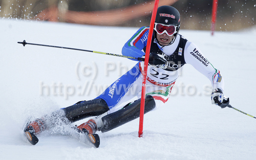 : Second placed Christof Innerhofer of Italy skiing in slalom of men super combined race of FIS alpine skiing World Championships in Garmisch-Partenkirchen, Germany. Men super combined race of FIS alpine skiing World Championships, was held on Monday, 14th of February 2011, in Garmisch-Partenkirchen, Germany.
