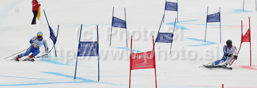Garmisch-Partenkirchen ,Germany - 16.02.2011 : Matts Olsson of Sweden and Giovanni Borsotti of Italy skiing in team race of FIS alpine skiing World Championships in Garmisch-Partenkirchen, Germany. Team race of FIS alpine skiing World Championships, was held on Wednesday, 16th of February 2011, in Garmisch-Partenkirchen, Germany. Photo by: Primoz Jeroncic
