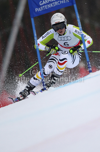 : Fifth placed Viktoria Rebensburg of Germany skiing in second run of Women giant slalom race of FIS alpine skiing World Championships in Garmisch-Partenkirchen, Germany. Women giant slalom race of FIS alpine skiing World Championships, was held on Thursday, 17th of February 2011, in Garmisch-Partenkirchen, Germany.